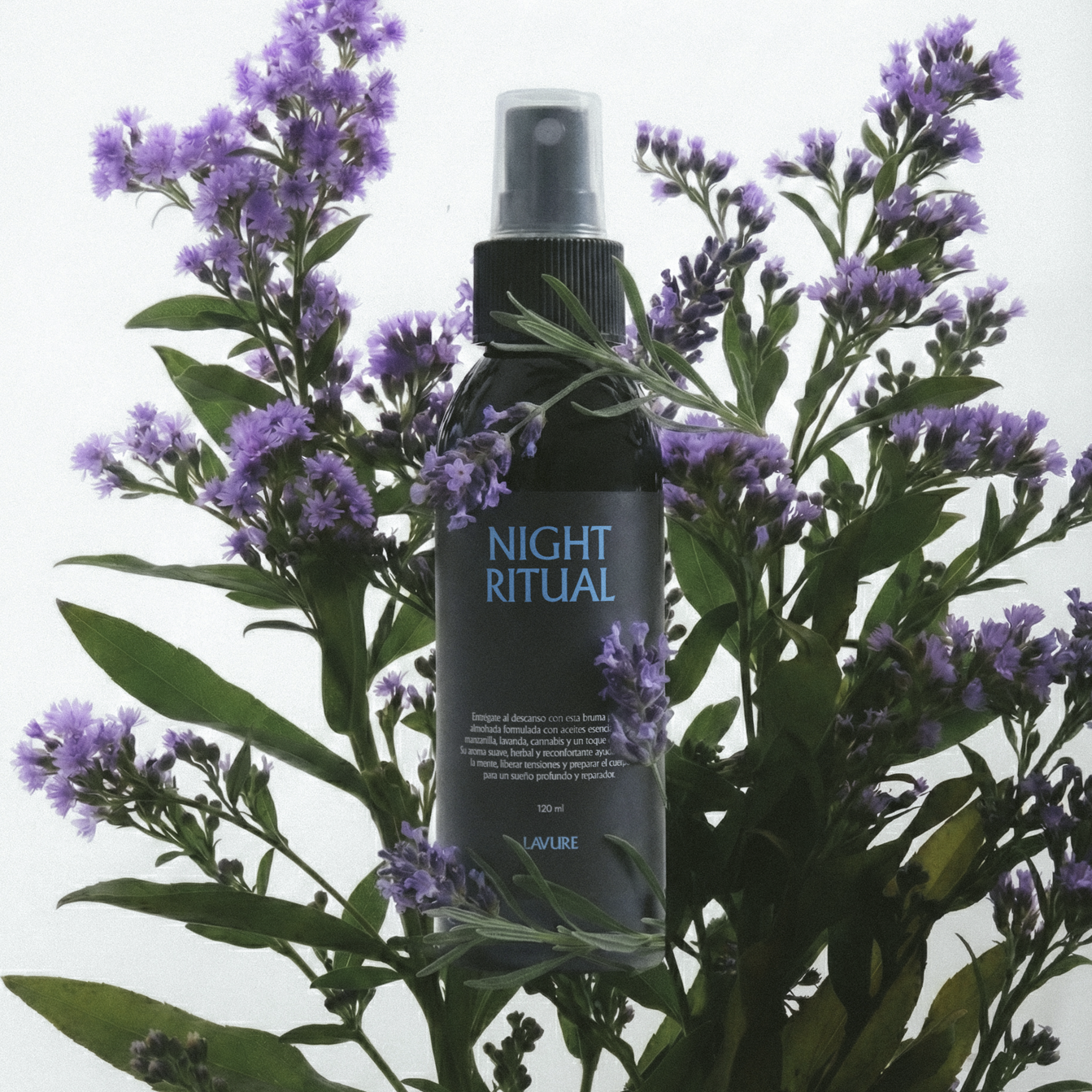 Night Ritual es una bruma para almohada con propiedades aromaterapéuticas creada para acompañar el descanso y preparar el cuerpo para la noche. Su fórmula combina aceites esenciales de manzanilla, lavanda, cannabis y un sutil toque de limón, dando lugar a un aroma suave, herbal y reconfortante. Ideal para usar antes de dormir.